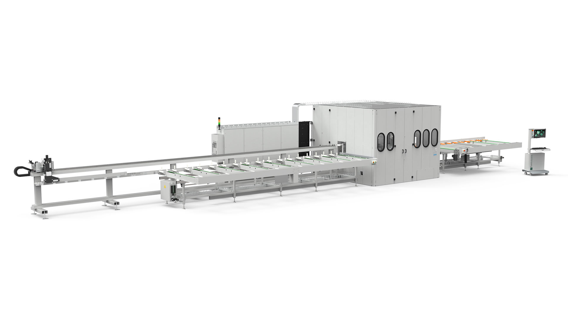 Χάρη στον υψηλό αριθμό ελεγχόμενων αξόνων, το πλήρως αυτοματοποιημένο σύστημα παράγει επεξεργασμένα κομμάτια και κομμένα σε μεγέθη με την χρήση ενός κέντρου εργασίας πολλαπλών κινητήρων και ένα μηχάνημα κοπής με εξερχόμενη από μπροστά, κίνηση δίσκου κοπής παρέχοντας ευελιξία για πολλαπλές εφαρμογές. 20 διαφορετικές εκδοχές είναι διαθέσιμες, οι οποίες μπορούν να διαμορφωθούν σε όρους βάθους και μήκους του υλικού του σταθμού φόρτωσης/εκφόρτωσης και δεξιάς ή αριστερής κατεύθυνσης τροφοδοσίας.