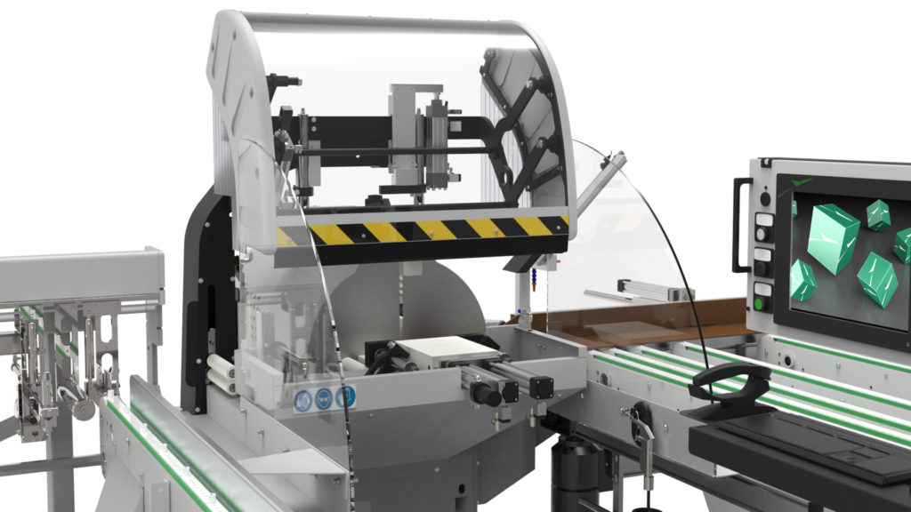 Η πλήρως ηλεκτρονικά ελεγχόμενη γραμμή παράγει διαχωριστικά και πετάσματα παραθύρων χρησιμοποιώντας ένα μηχάνημα κοπής με εξερχόμενη από μπροστά κίνηση δίσκου κοπής. Ο χειριστής απλά φορτώνει τις μπάρες και ξεφορτώνει τα κατεργασμένα κομμάτια.