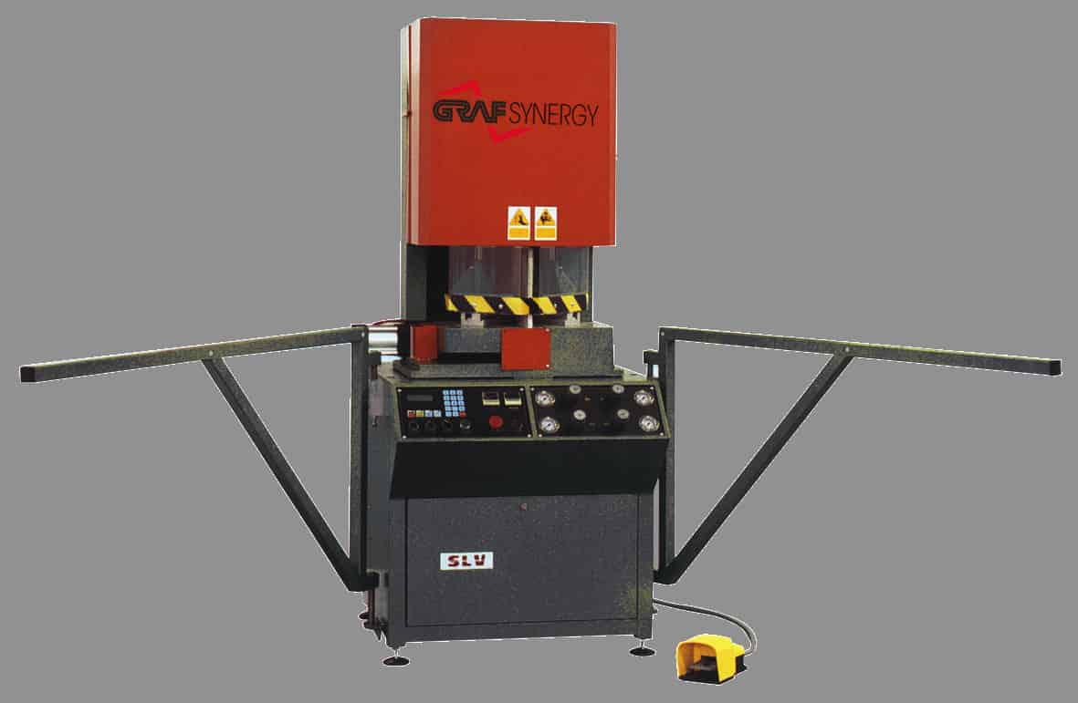 Κολλητική μηχανή με σύστημα συγκόλλησης υψηλής ακρίβειας και μεταβλητές γωνίες από 30ο έως 180ο, ικανή για συγκόλληση μεγάλων τμημάτων προφίλ, μέχρι και 200 x 200 mm στις 90°.